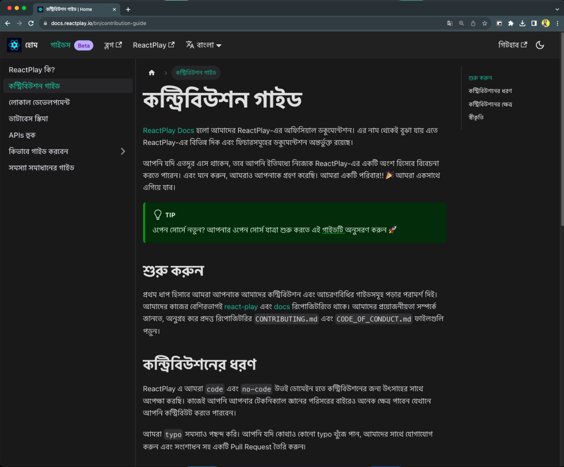 Our docsite is now available in an Indian native language Bangla. Kudos to Nargis Akther and whoever was associated with it.